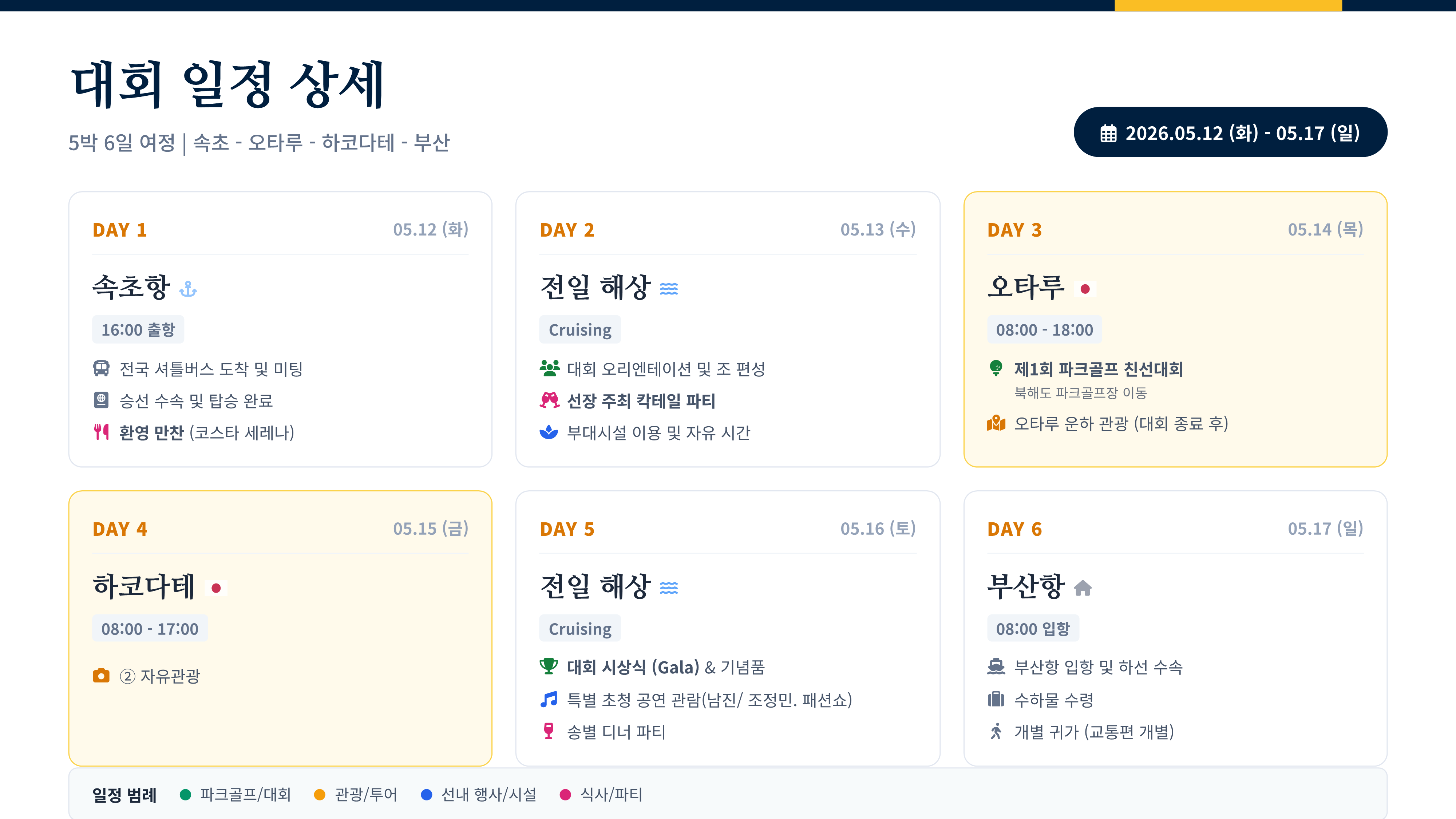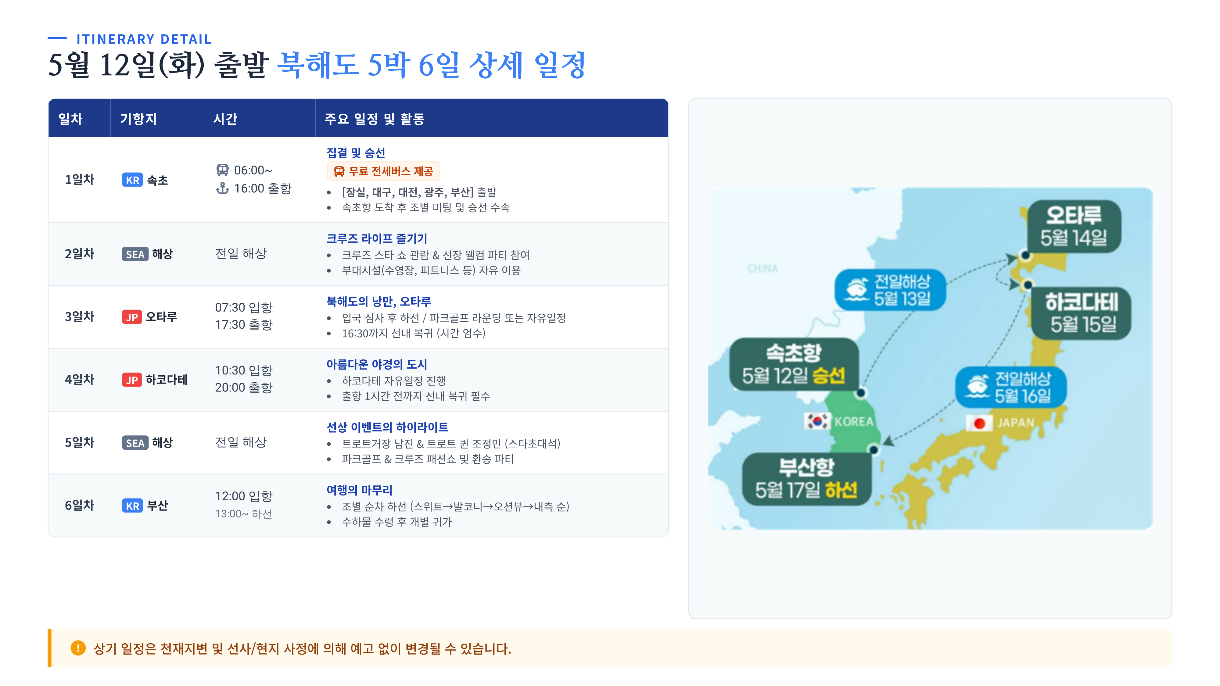 | 여행기간 | 2026년 05월 12일 (화) ~ 2026년 05월 17일 (일) 5박 6일 |